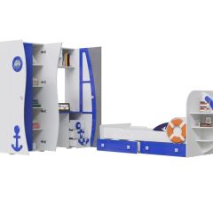 В набор также входит двустворчатый шкаф с отделением для одежды и двумя выдвижными ящиками в нижней части. Шкаф дополняет навесная полка с закрытыми отделениями, в которой удобно разместить учебные пособия или другие вещи.
