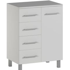 Столешницы столов и приставных тумб выполнены из МДФ толщиной 32 мм. Опоры столов, топы шкафов и подкатной тумбы выполнены из ЛДСП толщиной 32 мм, остальные элементы, в том числе задние стенки, выполнены из ЛДСП 16 мм.