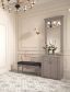 ***Декоративный карниз из натурального массива, полка с декоративной балюстрадой, декоративные утяжки на вешалке и сиденье, декоративные фрезерованные планки.