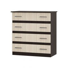 Классическая модель комода «Стандарт № 6» выполнена из ЛДСП высокого качества. Комод состоит из четырех выдвижных ящиков, на каждом из которых расположены две ручки.
