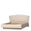 «кремовый белый», который уже успел полюбиться клиентам фабрики по серии «Марлен», но отличается более современным дизайном. В нем отсутствуют замысловатые декоративные элементы и колонны, на первый план выходят прямые линии. Украшением комплекта служат оригинальные итальянские ручки золотистого цвета. В оформлении фасадов комода сделан необычный ход. Некоторые линии, делящие ящики на, казалось бы, самостоятельные отсеки, на самом деле являются фрезеровкой. Кровать оснащена мягким тканевым изголовьем, что является сейчас безусловным трендом.